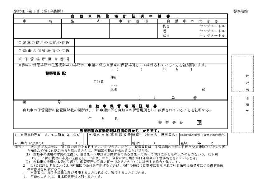 熊本県 車庫証明申請書